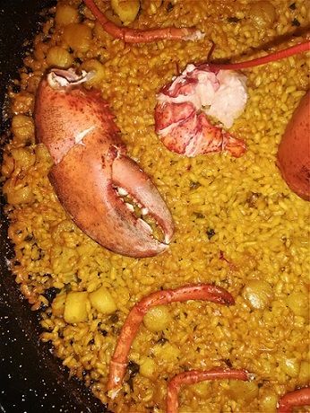 Bij vis wordt best gekozen voor een stevige vis die bij het begin wordt gebakken en dan aan het einde weer toegevoegd. Voor gamba's geldt hetzelfde, bak ze met de schaal en indien mogelijk ook de kop die veel smaak afgeven, en voeg ze aan het einde (al dan niet gepeld) weer toe zodat ze niet uitdrogen. Intktvis wordt heel vaak gebruikt in paella, het heeft dikwijls zelf niet heel veel smaak maar geeft wel veel smaak af aan de bouillon, net zoals het vocht van mosselen en schelpen. Kreeft of sint-jacobsvruchten zijn feestelijke opties.