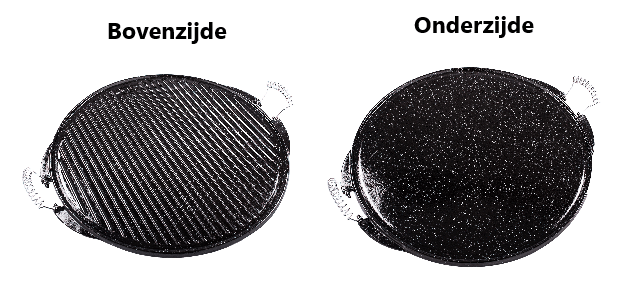 Elke plancha heeft een geribbelde bovenzijde voor het grillen van vlees, vis of groenten, en een gladde onderzijde voor bv. het bakken van pannenkoeken.