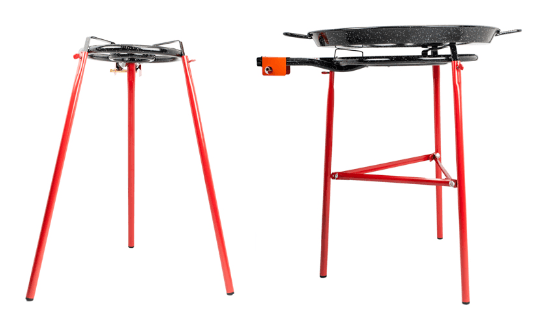 Un trépied est monté sur le brûleur à gaz afin que votre poêle à paella soit à une hauteur confortable pour cuisiner.
